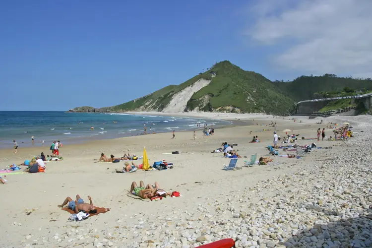 Playa de Portacos. Características. Ocupación: Media. Longitud aproximada: 60 m Accesos: A pie. Servicios: Aparcamiento: No. Socorrismo: Fin de semana (Torimbia). Material: Arena. Color: Blanquecino. Forma: Concha. Desembocadura fluvial: Ni ...